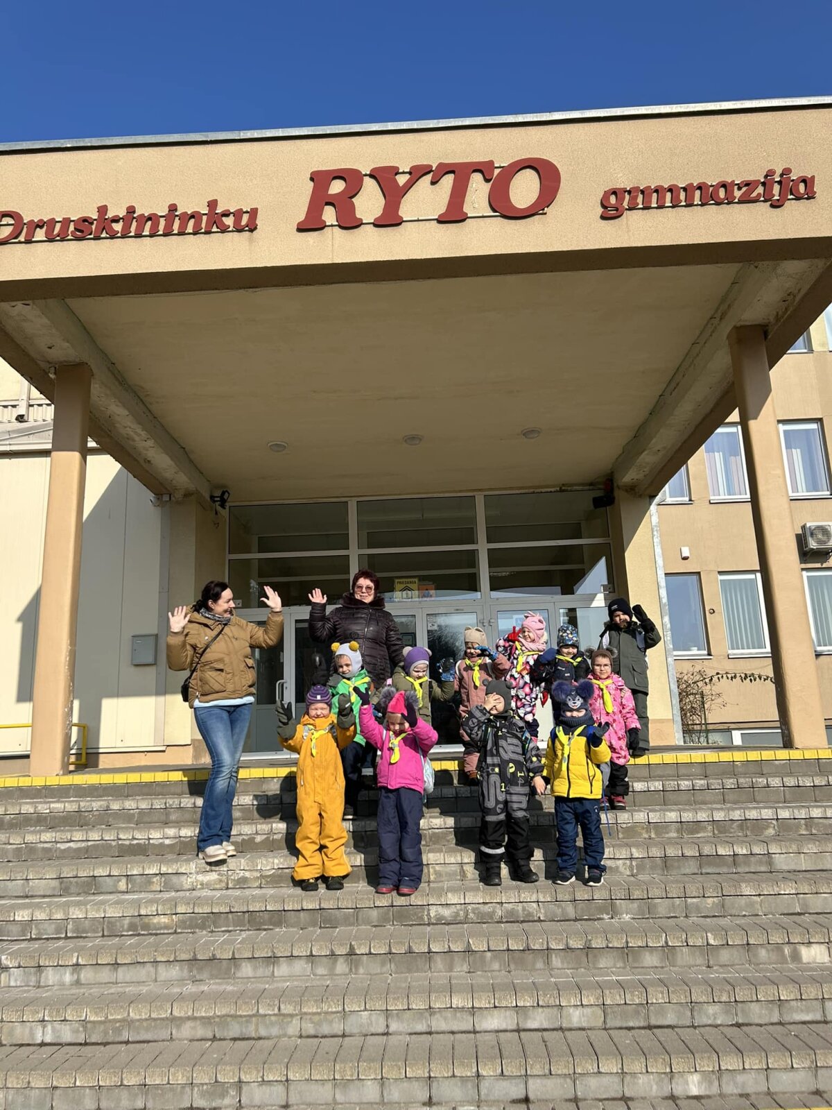 Dėkojame mokyklos bendruomenei, fizinio ugdymo mokytojams Danieliui ir Danguolei bei gimnazistams, už šiltą priėmimą, bendravimą ir bendradarbiavimą.