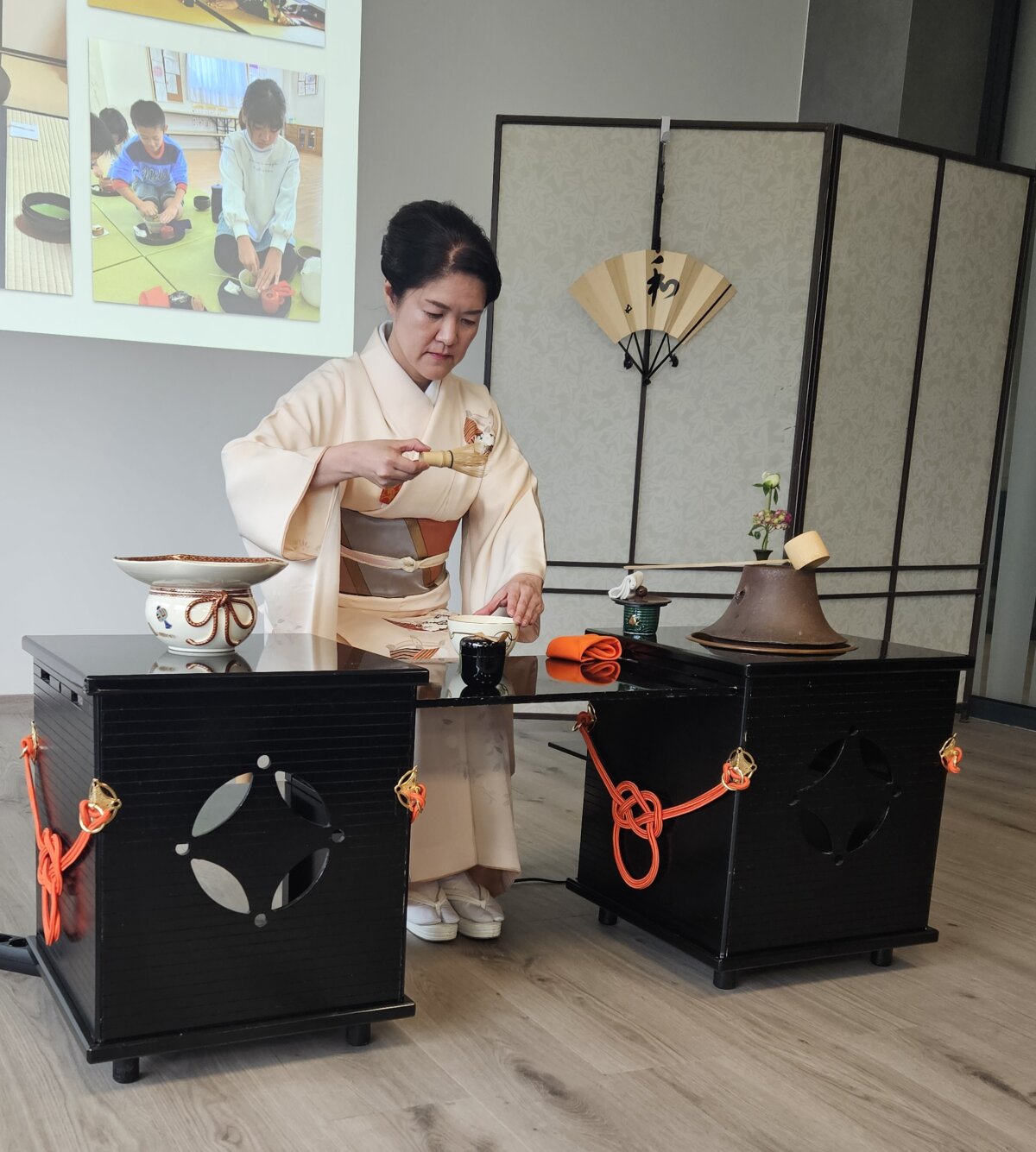 Meistrė pristatė arbatos ceremonijos istoriją, pagrindinius principus bei jos reikšmę šiuolaikiniam žmogui. Kartu su kitomis meistrėmis ji kiekvienam dalyviui pagamino kvapnų matcha (liet. mačia) puodelį. Meistro pagarba kiekvienam svečiui, kuriam ruošiama arbata, suteikia šiam ritualui ypatingos prasmės.