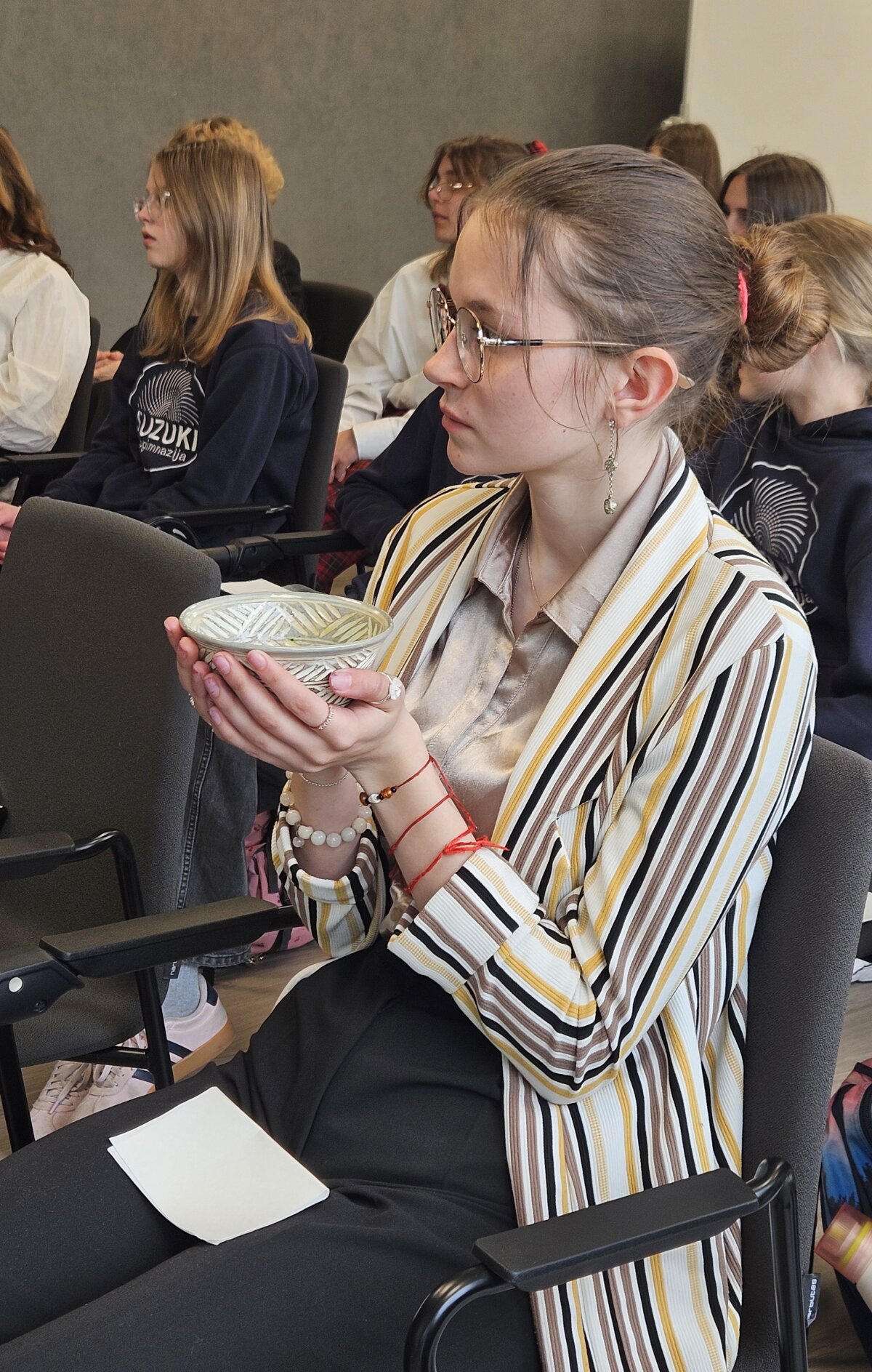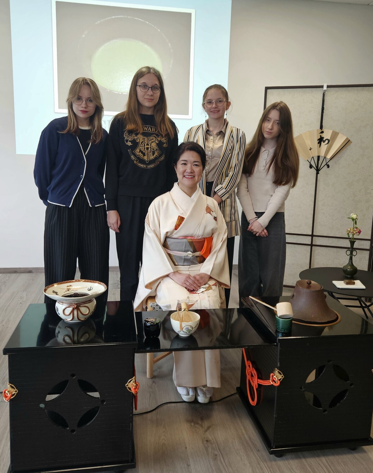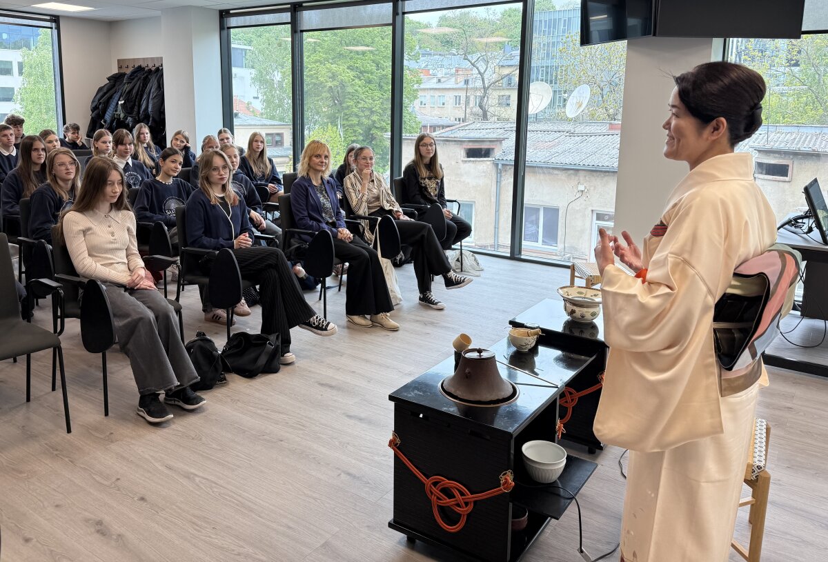 „Mokausi jau 40 metų ir vis dar esu mokinė“, – kalbėdama apie savo patirtį, sakė arbatos ceremonijos meistrė Shiho Miyawaki, prieš panardindama dalyvius į arbatos magiją. Tarp jų buvo ir gimnazijos japonų klubo atstovai. Šis renginys – Japonijos dienų Kaune „WA“ dalis.