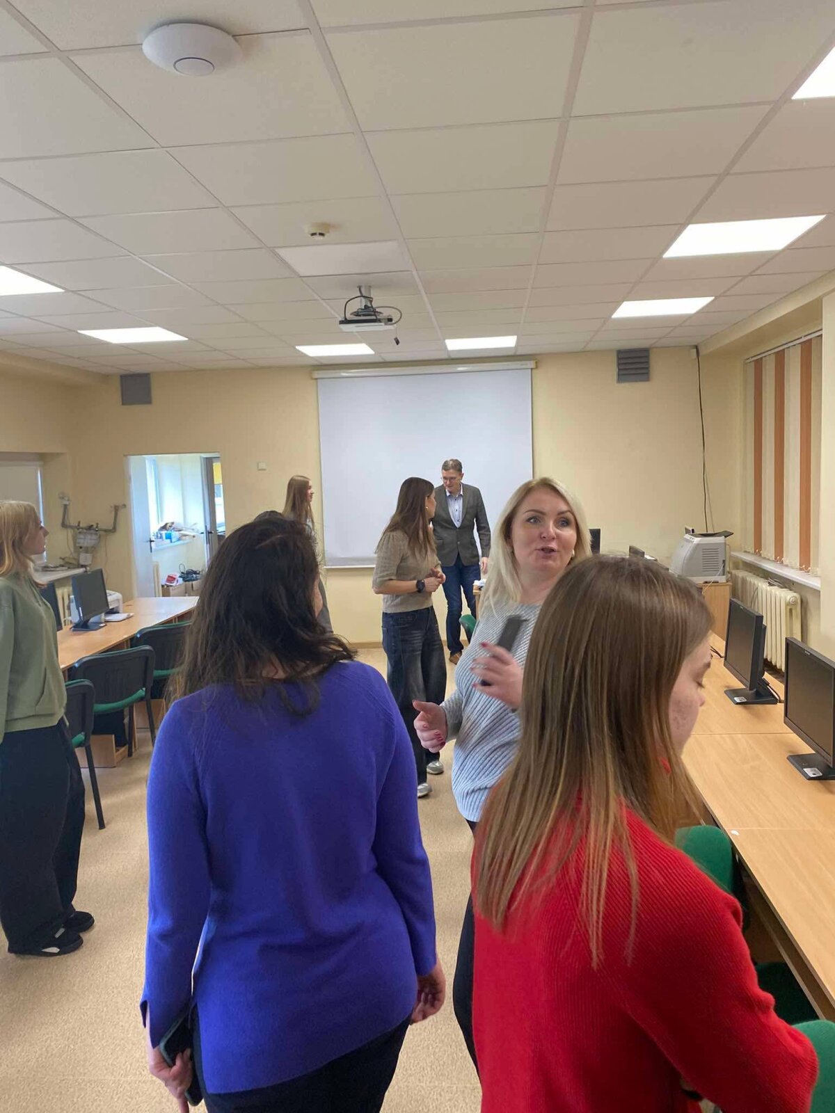 Vėliau technologijų kabinete pasidalinome gerąja savo patirtimi, vykdytais renginiais ir pasisekusiomis akcijomis (išvykoje į Vilnių jau girdėjome jų nuveiktų darbų pristatymus). Taip pat pasivaišinome vieni kitų atvežtomis vaišėmis ir šiltai pasikalbėjome prie puodelio arbatos.