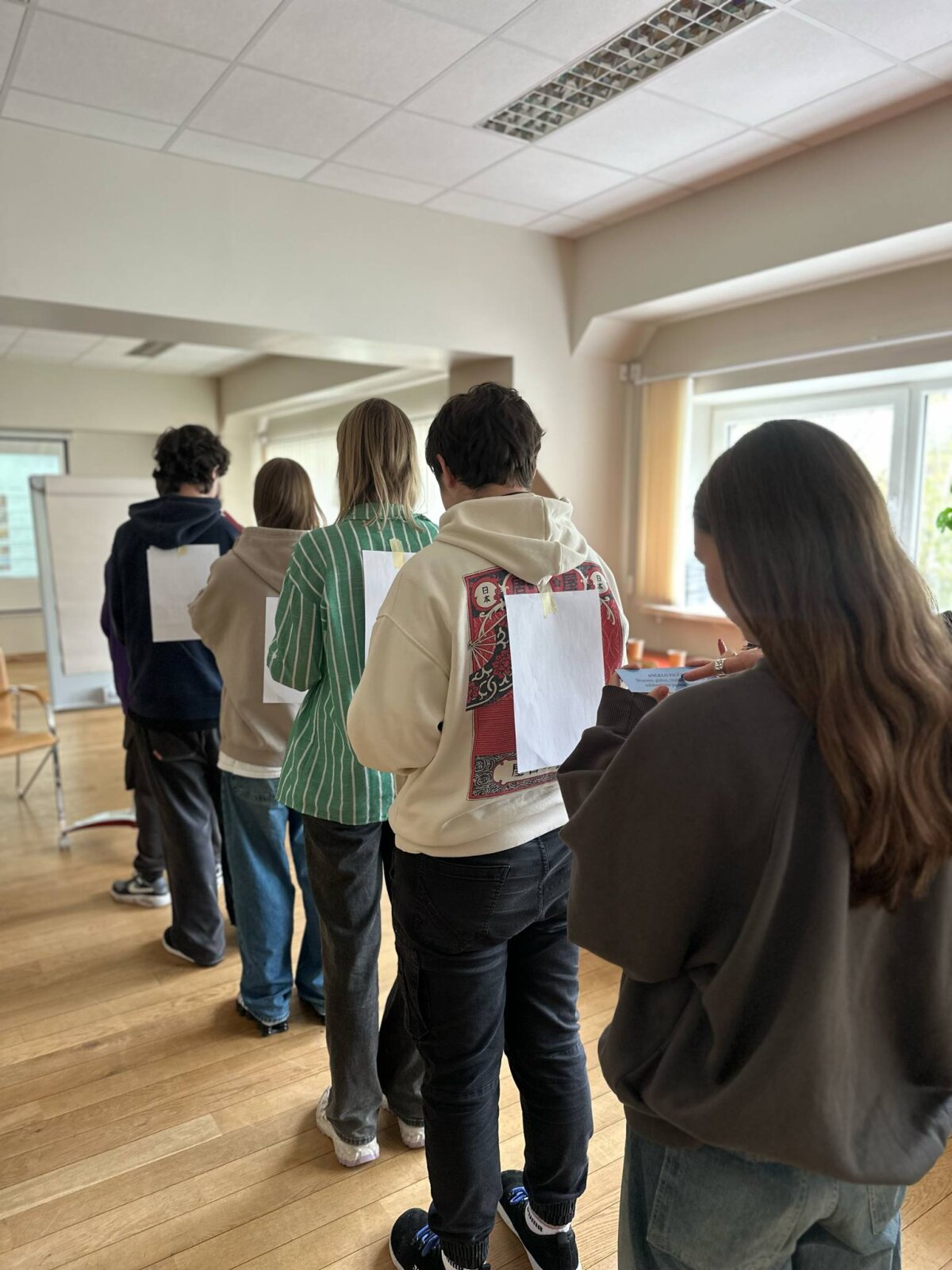 Valandėlė buvo organizuota pagal interaktyvų „World Café“ metodą, kviečiantį dalyvius aktyviai įsitraukti, keliauti per skirtingas „stoteles“ ir dalintis mintimis. Mokiniai turėjo įveikti keturias kūrybines užduotis:
