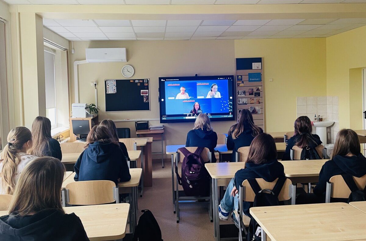 Spalio 16 d. gimnazistės Milda Bagdanavičiūtė, Vakarė Čmukaitė, Safija Toshmatova (Ia), Goda Junevičiūtė, Elzė Krasnickaitė, Ugnė Sinkevičiūtė, Skaistė Tumosaitė (Ib), Urtė Katčenkaitė, Ignė Streikutė (Ic) ir Eglė Krupavičiūtė (Id) dalyvavo internetinėje diskusijoje „Kalbos – tavo tiltas į ateitį“ (ang. „Languages: Your Bridge to the Future“), kurią organizavo Europos Komisija.