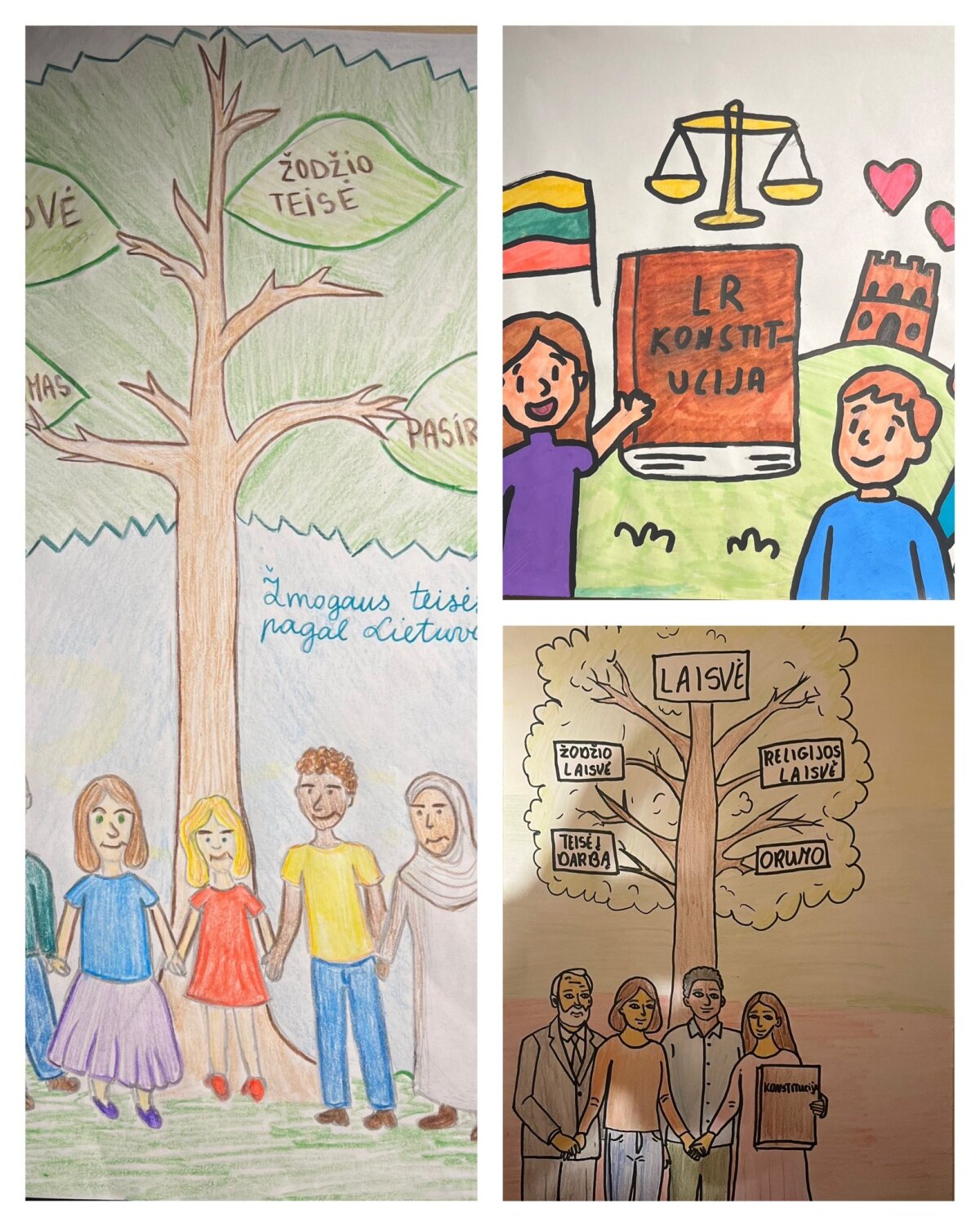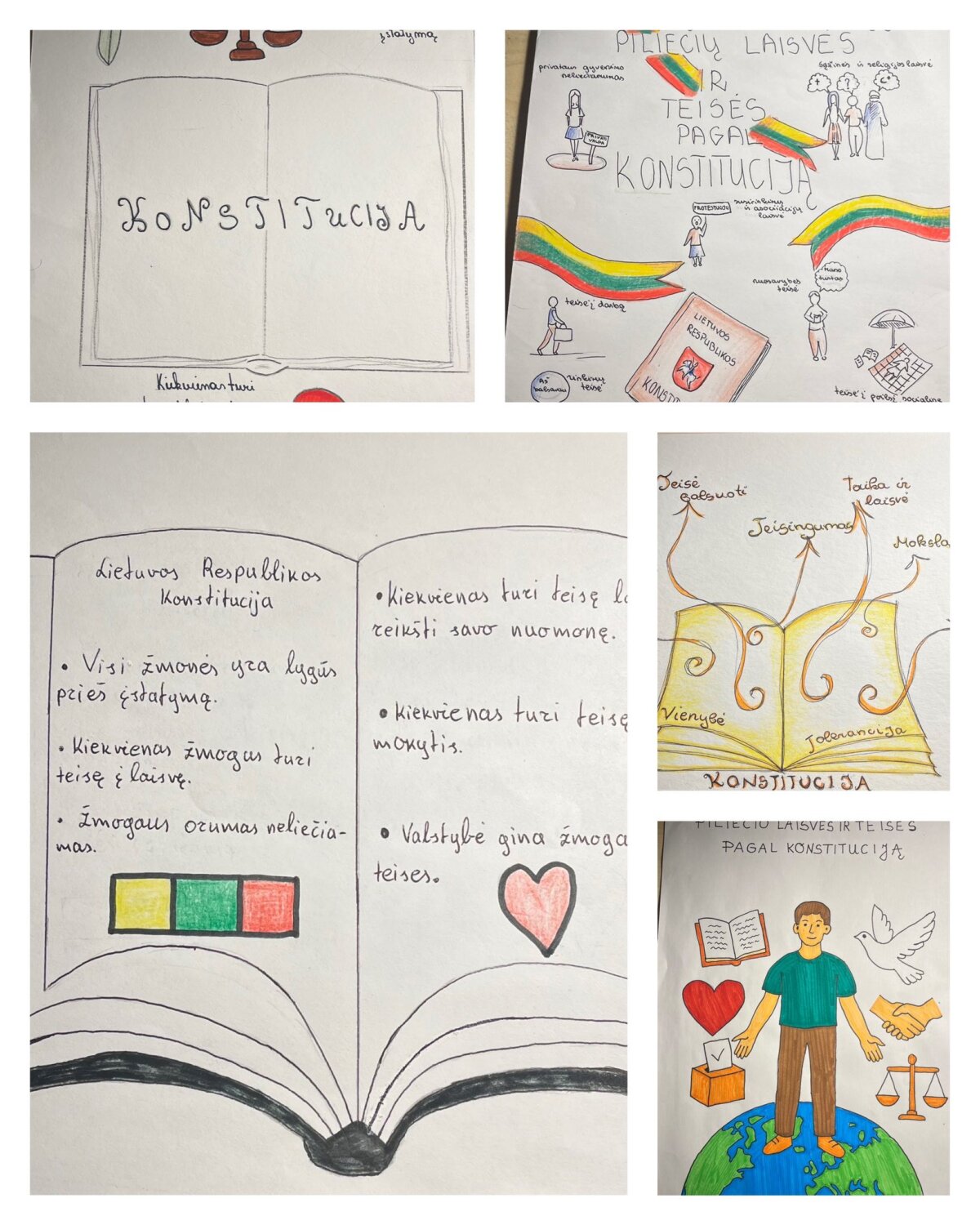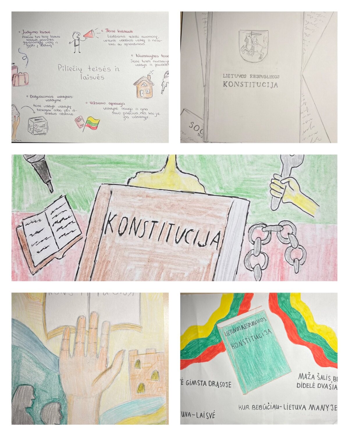 Egzaminas tapo gražia pilietiškumo tradicija ir mūsų mokykloje. I- IV gimnazijos klasių mokiniai sprendė egzamino užduotis, atsakinėjo į atviro tipo klausimus. I – okai pilietinio ugdymo pamokų metu analizavo kokias teises ir laisves piliečiams suteikia Lietuvos Konstitucija ir jas meniškai perteikė piešiniuose.