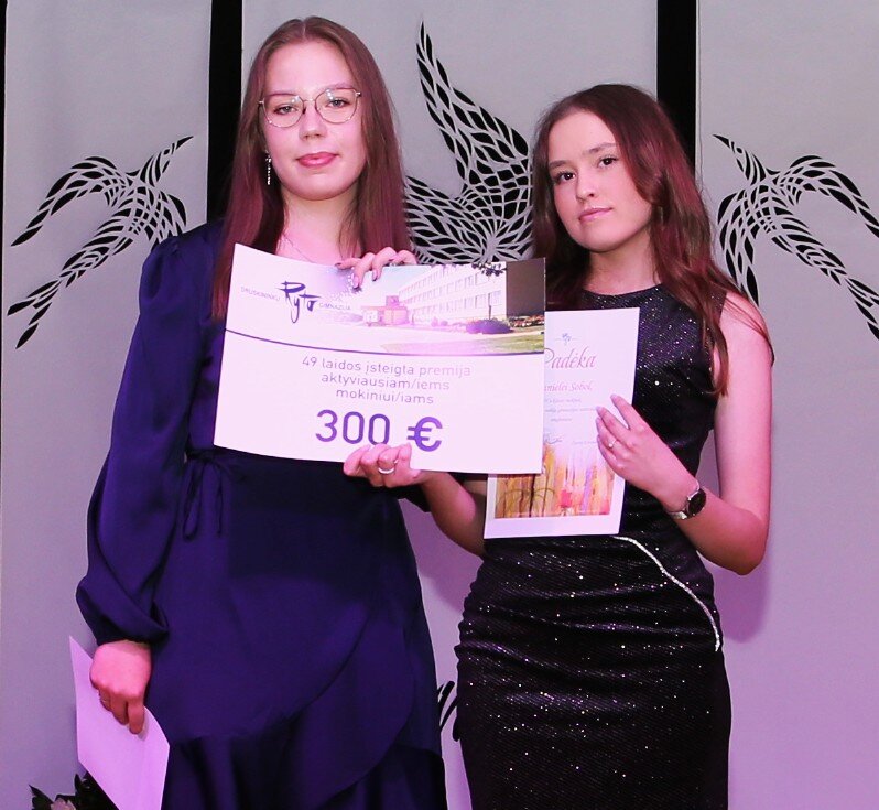 Šių metų išskirtinumas – 49-osios abiturientų laidos įsteigtas 300 eurų prizas aktyviausiems mokiniams, tapęs gražia padėkos ir įkvėpimo tradicija.