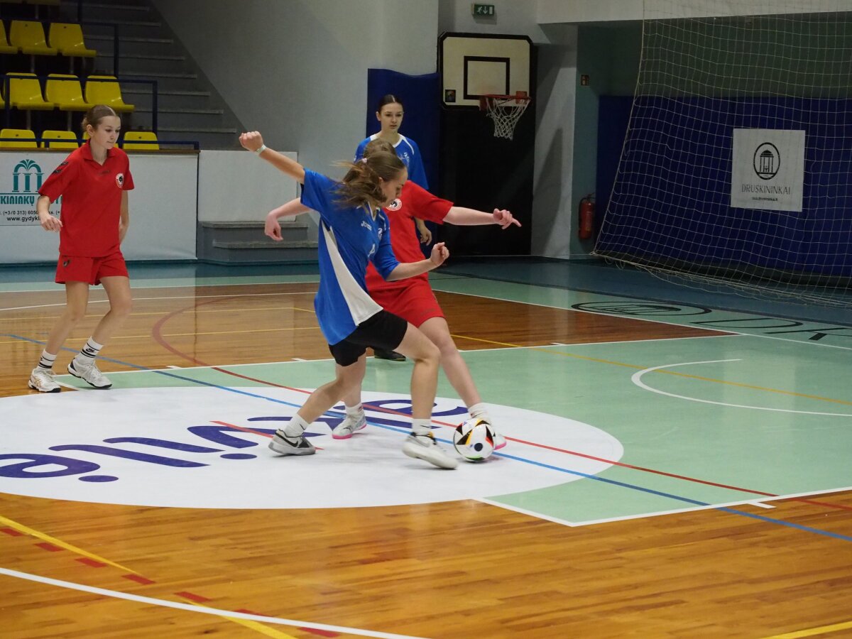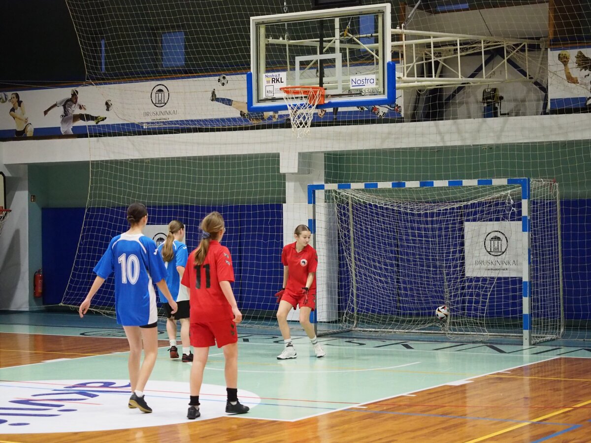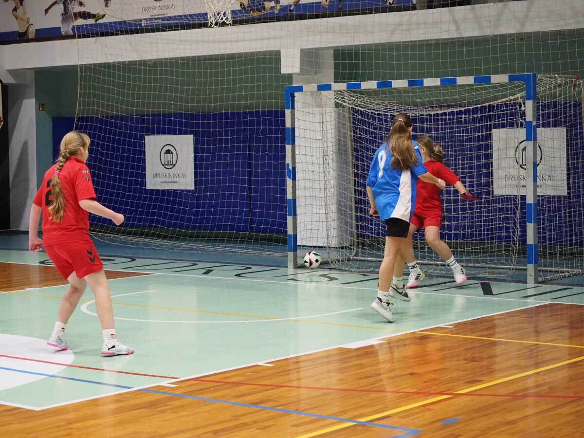 Merginos užtikrintai 13:2 nugalėjo Varėnos „Ryto“ progimnazijos komandą, pademonstruodamos gražų, drausmingą ir technišką žaidimą.