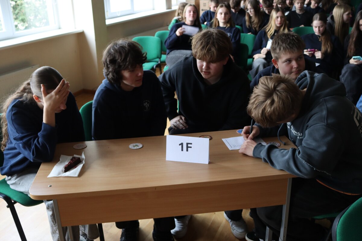 Protmūšyje varžėsi šešios pirmokų komandos, kurioms originaliai prisistačius, teko kibti į darbus: užduotys pareikalavo ne tik teorinių, loginių žinių, bet ir reakcijos, komandinio sutelktumo.