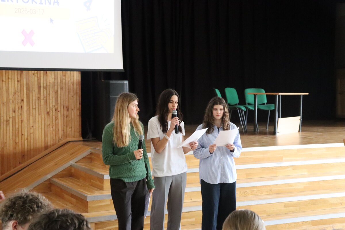 Tarptautinę matematikos dieną, geriau žinomą kaip Pi dieną, sutampančią su garsaus fiziko, reliatyvumo teorijos išradėjo Enšteino gimtadieniu, ,,Ryto“ gimnazijoje minėjome tradiciškai: praūžė matematikos protmūšis, šiemet išsiskyręs formatu ir pasirengimo darbais, mat matematikos mokytojams leidusios pailsėti visas užduotis kūrė ir smagų renginį vedė trečiokės Milena Juodeškaitė, Justina Plukytė ir Gabrielė Dos Anjos. Vėlgi įrodyta: matematika, mokslų karalienė, tikrai gali būti įdomi, netgi azartiška, staigmenų kupina.