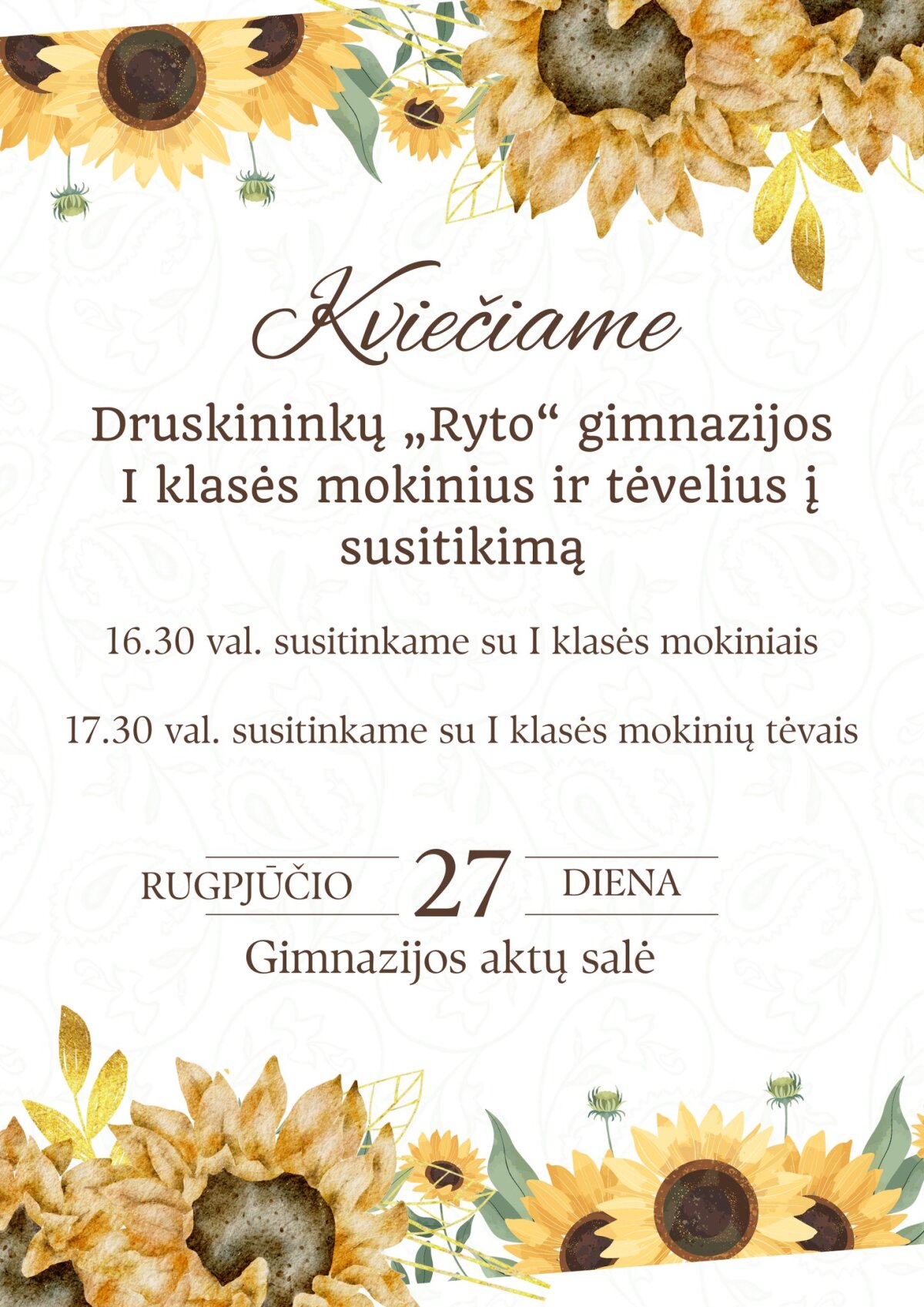 Kviečiame būsimų I klasių tėvelius į atvirų durų dieną bei susirinkimą Druskinin... -