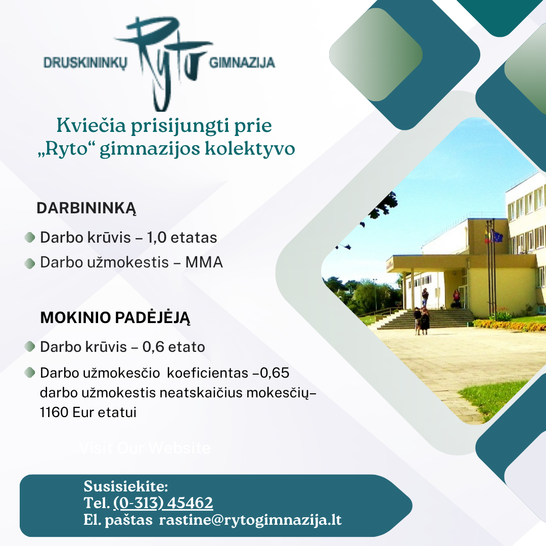 Druskininkų „Ryto“ gimnazija kviečia prisijungti prie mūsų komandos. -