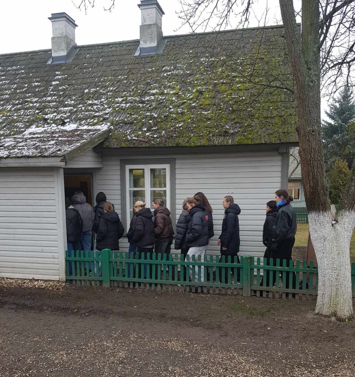 Pamoką drauge su muziejininke S. Rundyte vedė anglų kalbos mokytojai L. Šerkšnaitė ir N. Plūkys. Turiningos ekskursijos po M. K. Čiurlionio šeimos namus metu mokiniai apžiūrėjo kambarius, interjerą, interjero detales, muzikinius instrumentus, daug sužinojo apie medžiagas, iš kurių pagaminti baldai ir įvairios interjero detalės. Po ekskursijos pamoka persikėlė į muziejaus edukacinę erdvę, kurioje mokiniai tapo keliautojais laiku, kurie nukeliavo į praėjusį amžių ir detaliai aptarė M.K. Čiurlionio šeimos namus. Mokinių laukė praktinės užduotys anglų kalba, kurias atlikdami jie pademonstravo ekskursijos metu įgytas žinias, pasitikrino savo pastabumą ir apibendrino pamoką.