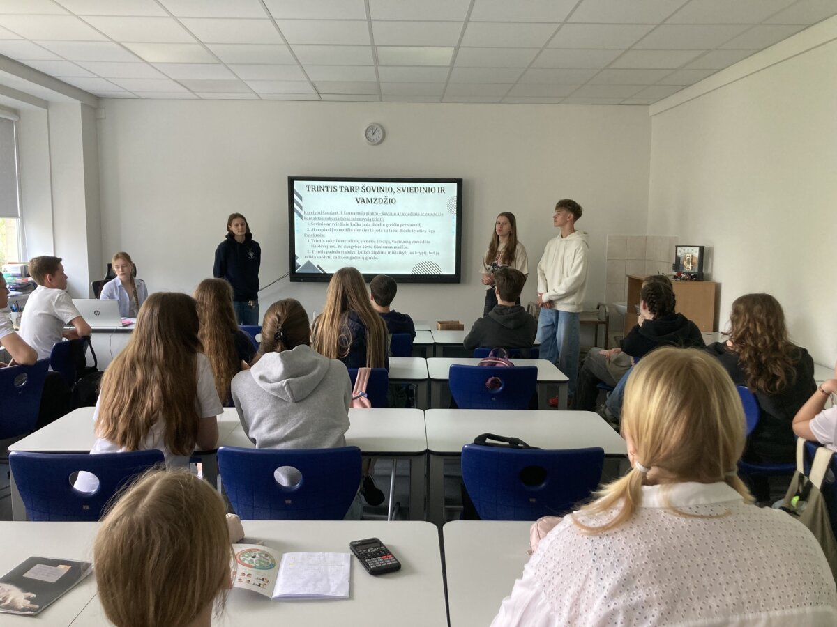 Įgyvendinant Tūkstantmečio mokyklos programą, gimnazijos II klasių mokiniai daly... -