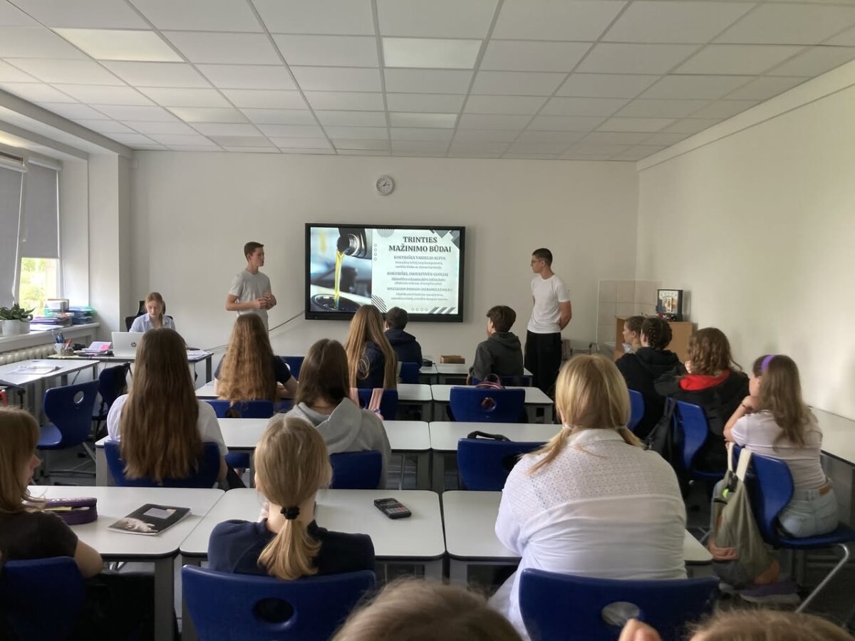 Įgyvendinant tūkstantmečio mokyklos programą, vyko projekto „Trinties jėgos rūšys ir jų poveikis kasdienėje veikloje“ pristatymas.