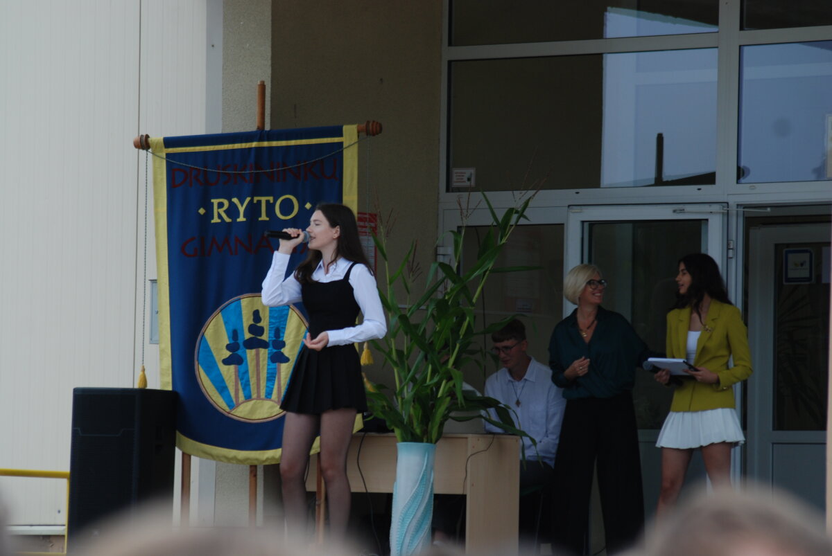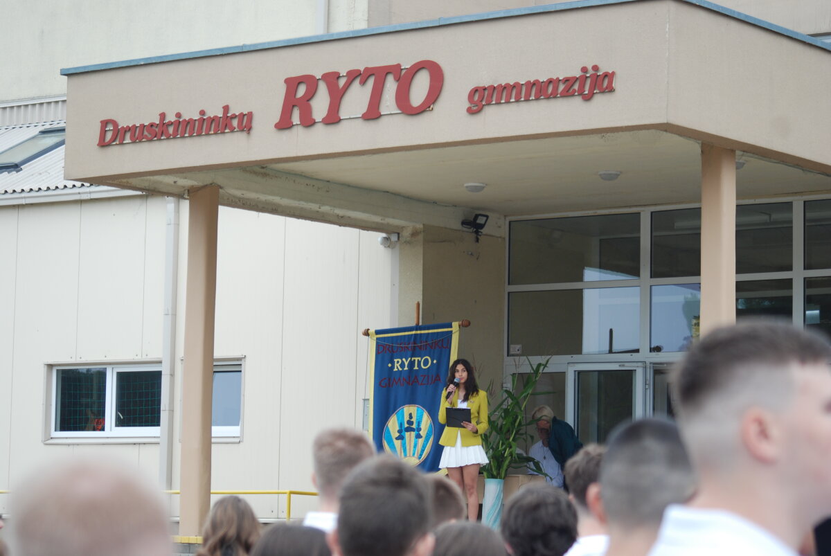 Šiandien Druskininkų „Ryto“ gimnazijoje vyko naujų mokslo metų pradžios šventė. Gimnazistus pasveikino direktorė Žaneta Krivonienė, Druskininkų švietimo skyriaus vedėja Jurgita Naruckienė bei LR Seimo narys Linas Urmanavičius.