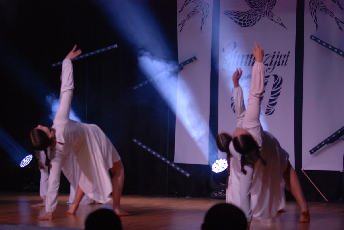 šoko šiuolaikinio šokio studija „Decima“ ir gimnazijos mokytojai (choreografė Rūta Dvorkinienė),