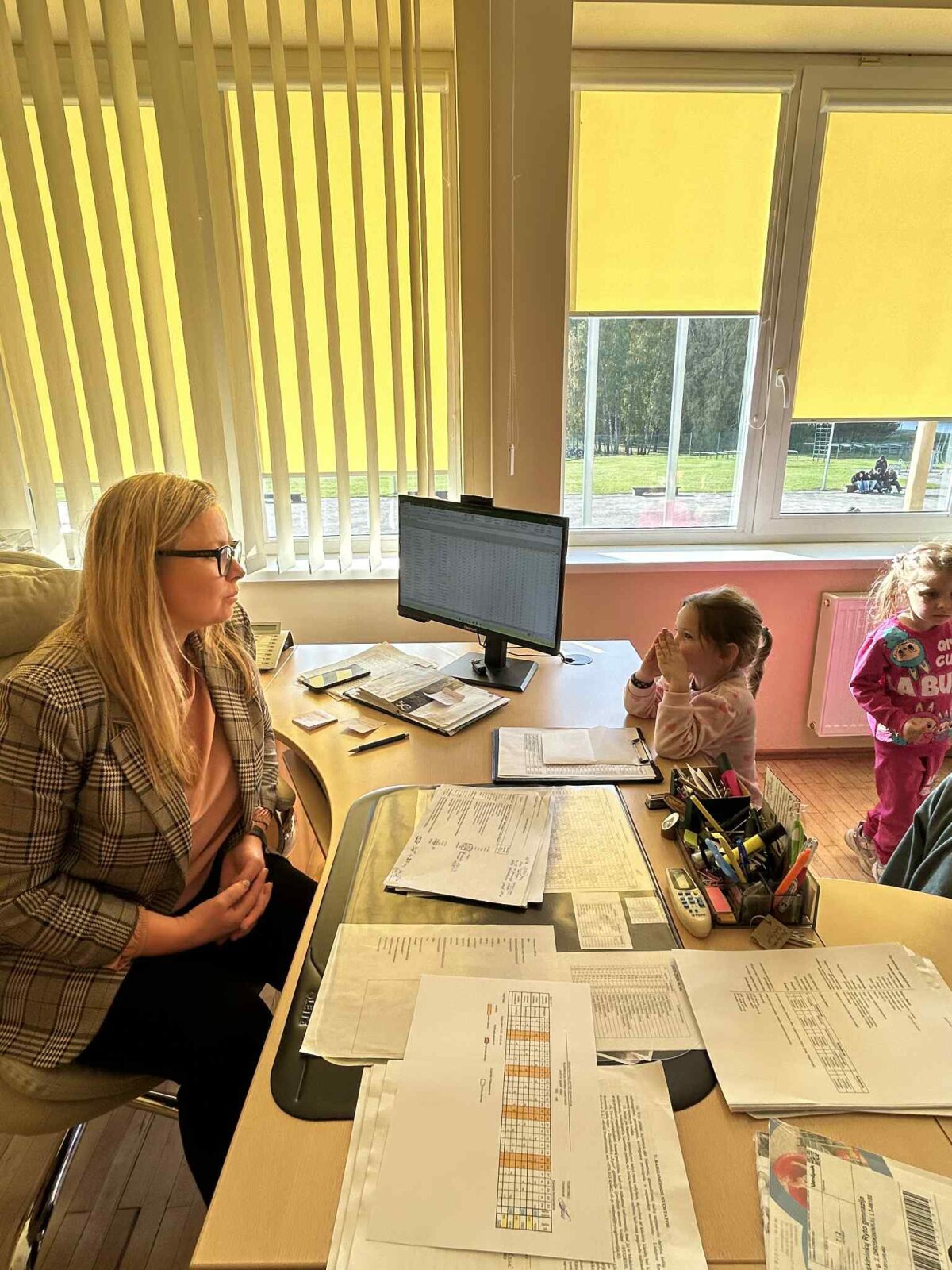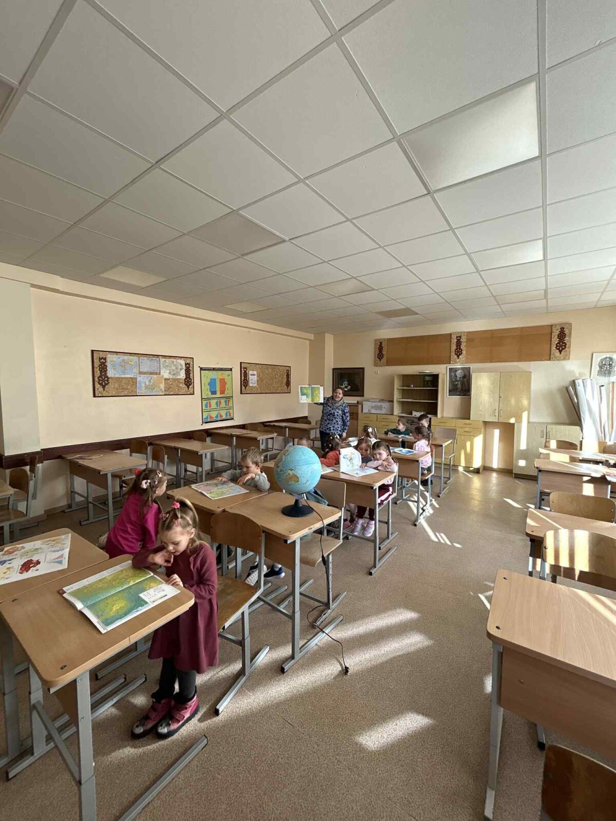 Mažieji taip pat apsilankė geografijos kabinete, susipažino su gimnazijos direktore ir specialiuoju pedagogu.