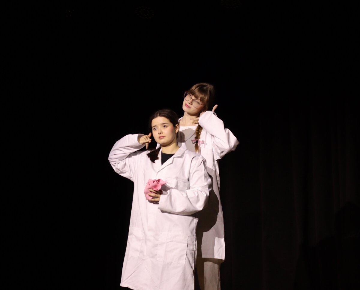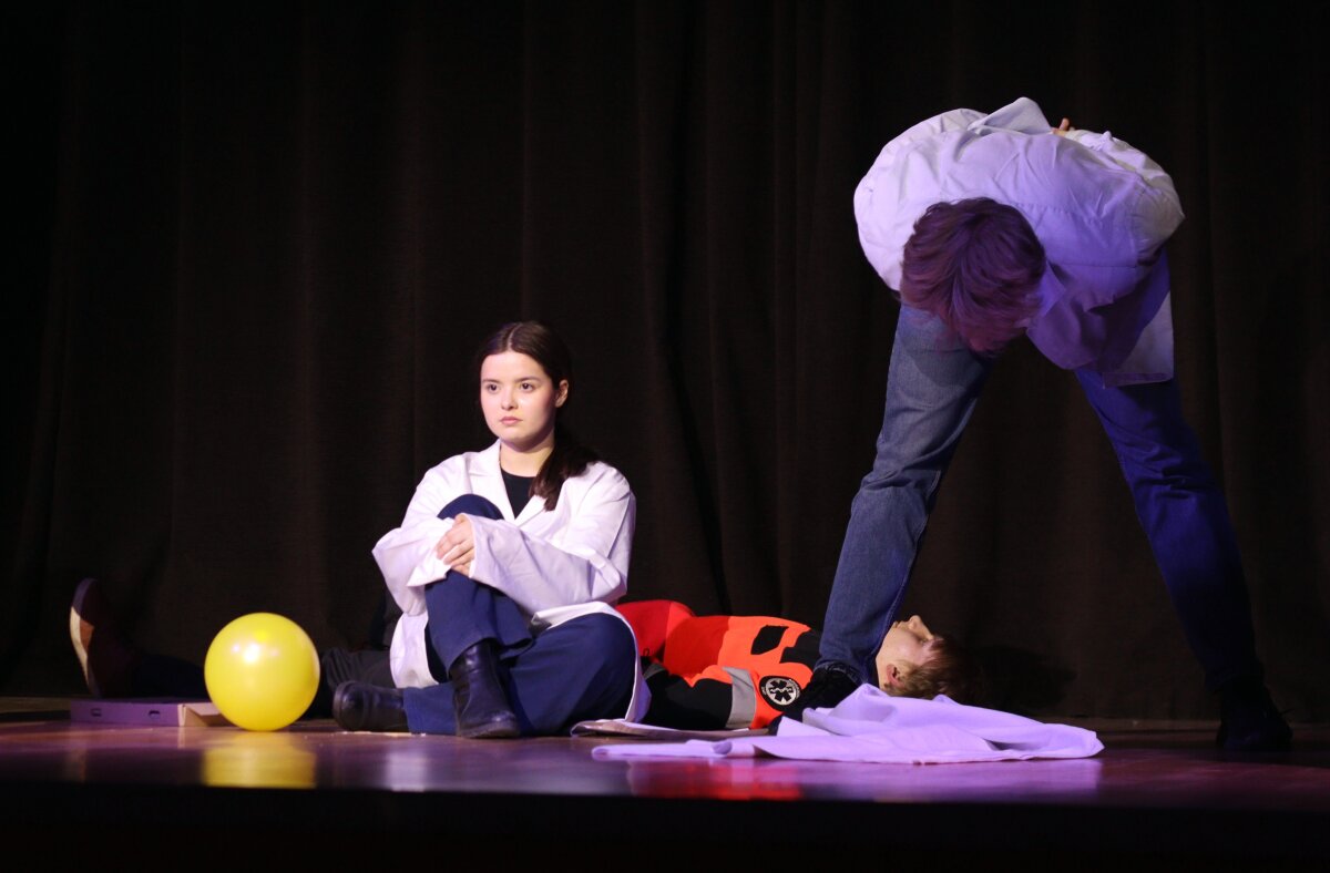 Ugnei Lesevičiūtei (III d) teko ir ledų pardavėjos, ir ligoninės slaugytojos įsimintini personažai. Kareivio ir paramediko amplua – Mangirdo Graužio (III a) nuopelnas. Jaunų gydytojų pora – Gabrielės Suchanekaitės (III d) ir Oresto Zuzevičiaus (III d) duetas. Simbolinis Klouno personažas teko Vestai Vilkinytei ( III c), o porcelianinė lėlė –Jutos Januškaitės (III d) vaidmuo. Rasa Stanionytė (III a) ir Juta Januškaitė (III d) taip pat įkūnijo pagrindinio veikėjo drauges.
