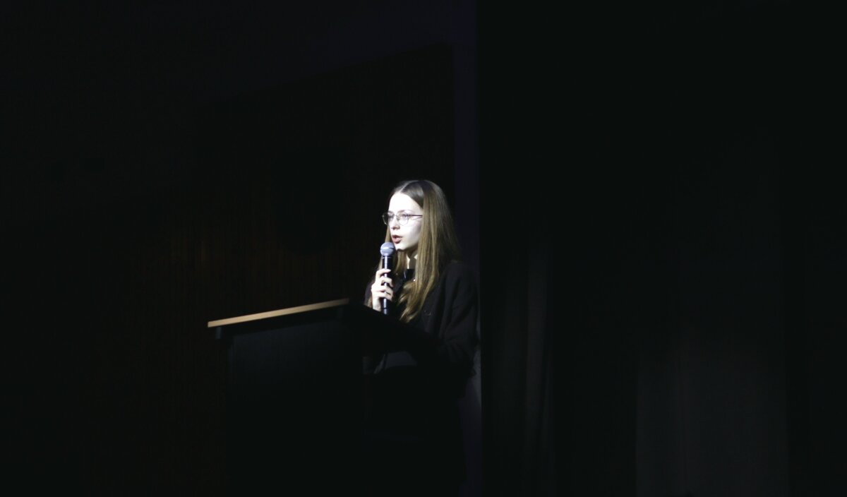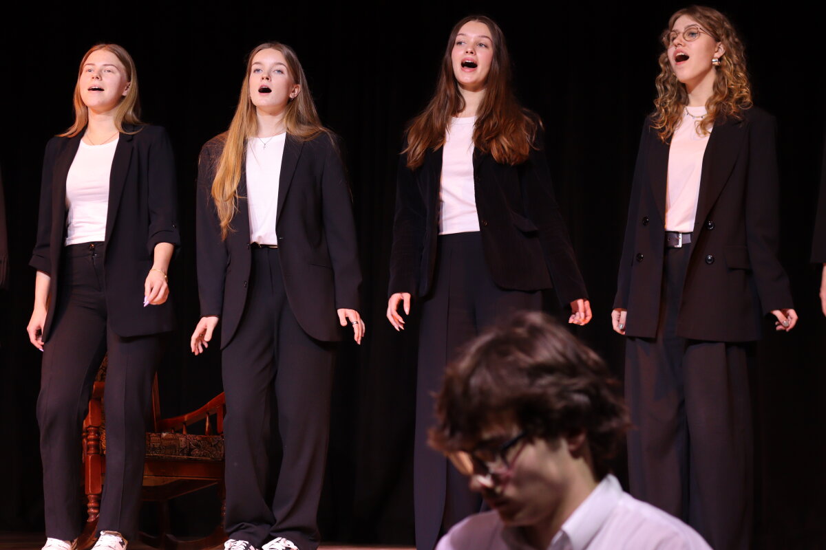 Karina Sereičikaitė (I b), skaitydama abiturientės Milanos Čepukėnaitės prozos ištrauką, klausytojus įtraukė į subtilų autorės pasaulį. Mokytojos Ronatos Balkaitienės vadovaujamo gimnazijos ansamblio mokiniai, TV konkurso ,,Dainų dainelė 26“ dalyviai, atlikę dvi dainas, sužavėjo profesionalumu ir nepriekaištinga stilistika. Tomui Degučiui (III d), skaitant Ramunės Karlonienės novelę ,,Upė“, teko įsikūnyti į pasakotojo, grįžtančio į prisiminimų su tėvu laiką, vaidmenį.