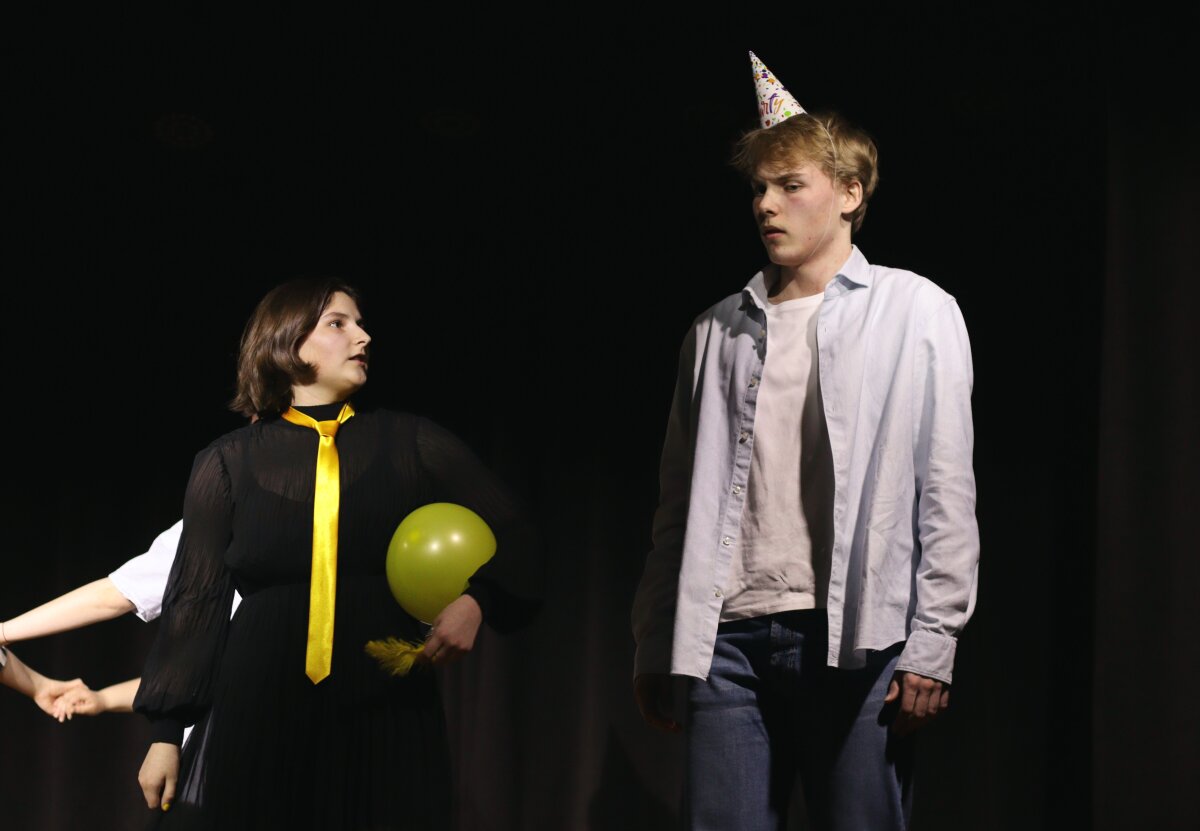 Geltonos Lapės, sekančios pagrindinio personažo gyvenimą, vaidmenį atliko Ariadna Garackevičiūtė (III d). Jono, gimtadienio kaltininko, rolė atiteko Benui Šukiui (III d).