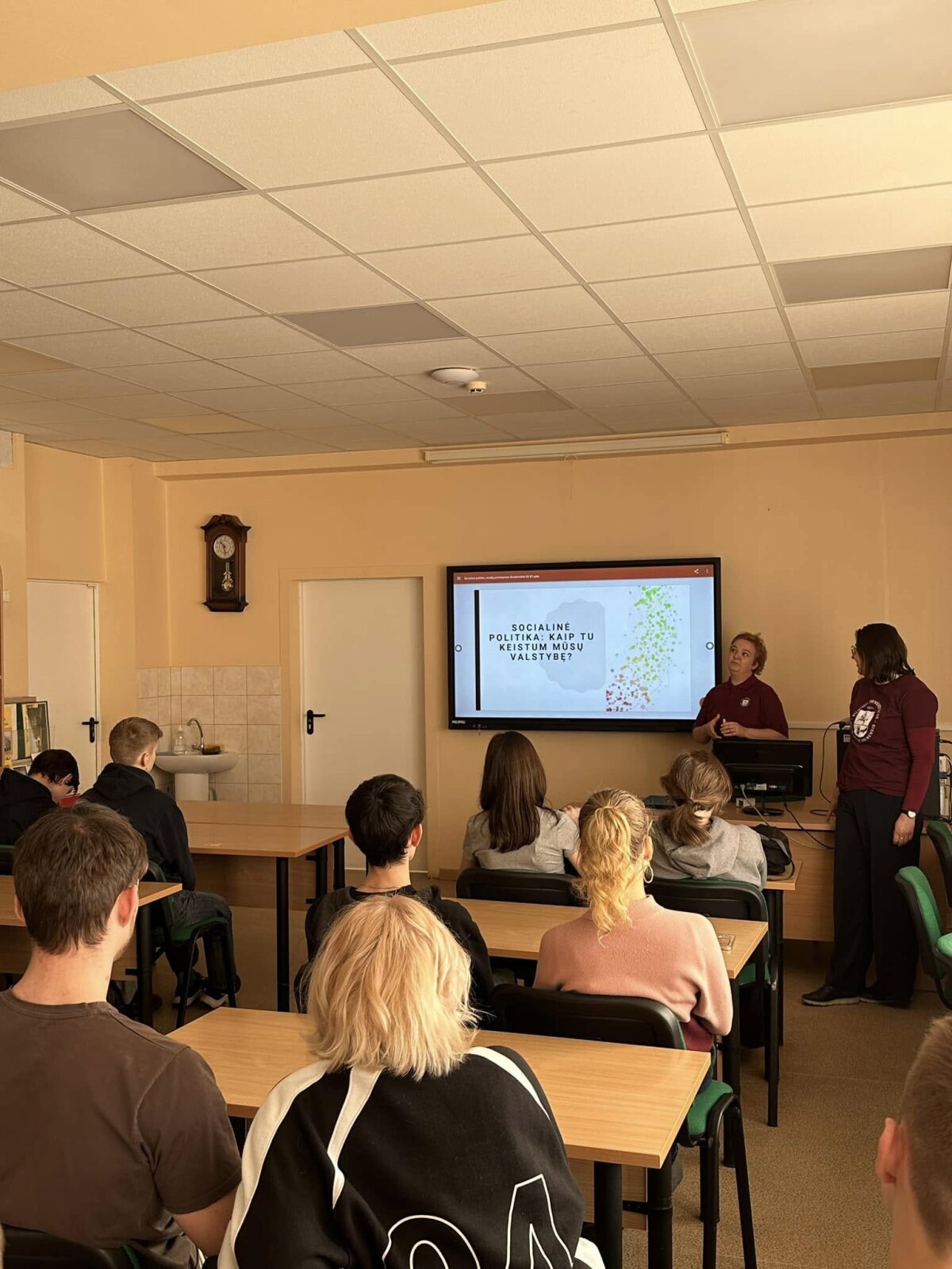 Šiandien mūsų gimnazijoje svečiavosi Vilniaus universiteto Filosofijos fakulteto Socialinės politikos studijų atstovai. Jie vedė įdomią paskaitą tema „Socialinė politika: kaip tu keistum mūsų valstybę?“ Mokiniai turėjo galimybę sužinoti, kokį poveikį socialinė politika daro visuomenei ir kaip kiekvienas gali prisidėti prie teigiamų pokyčių.