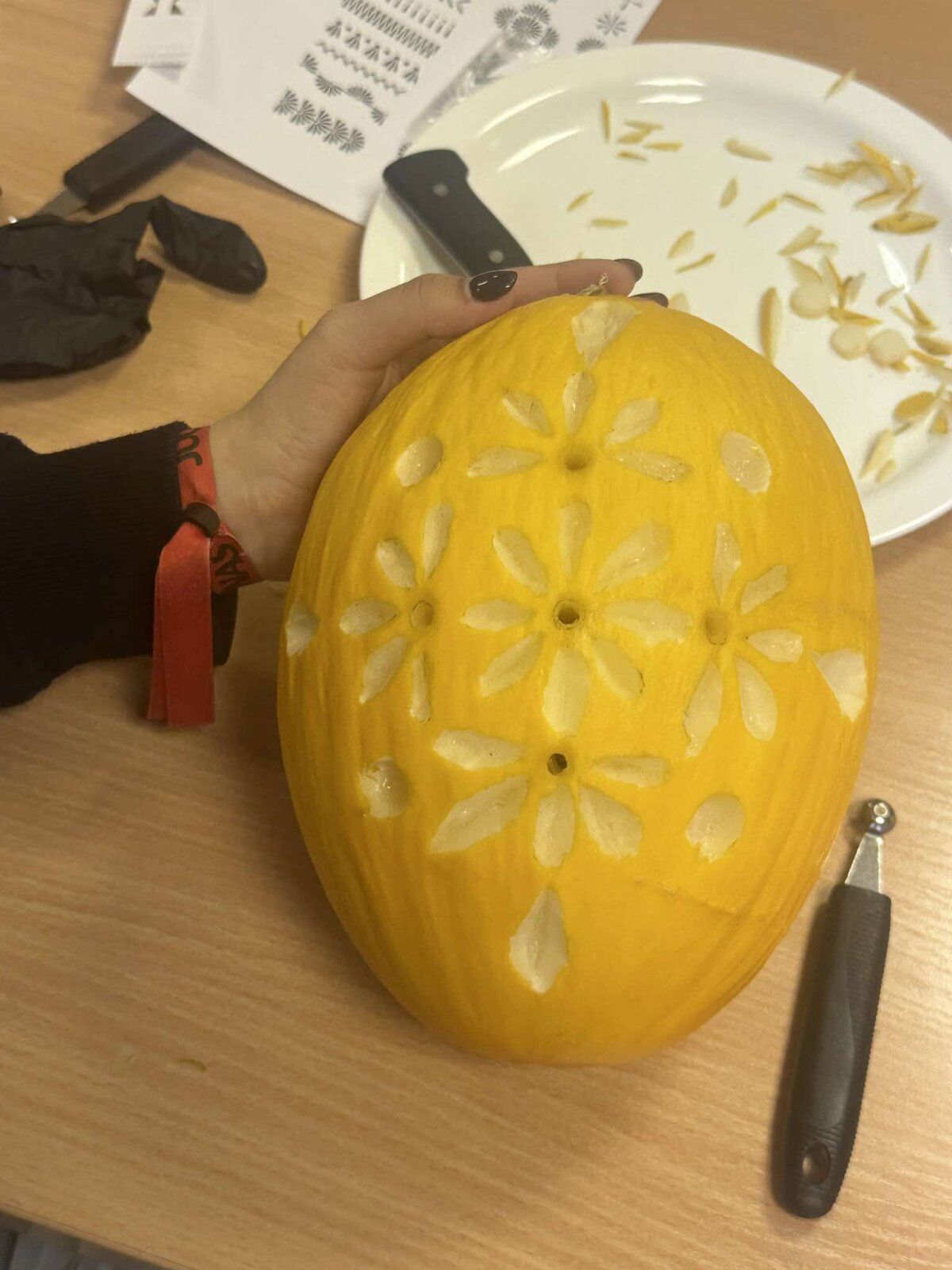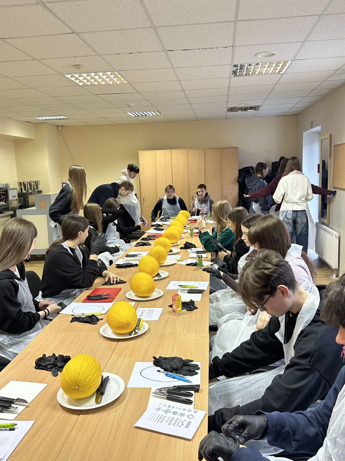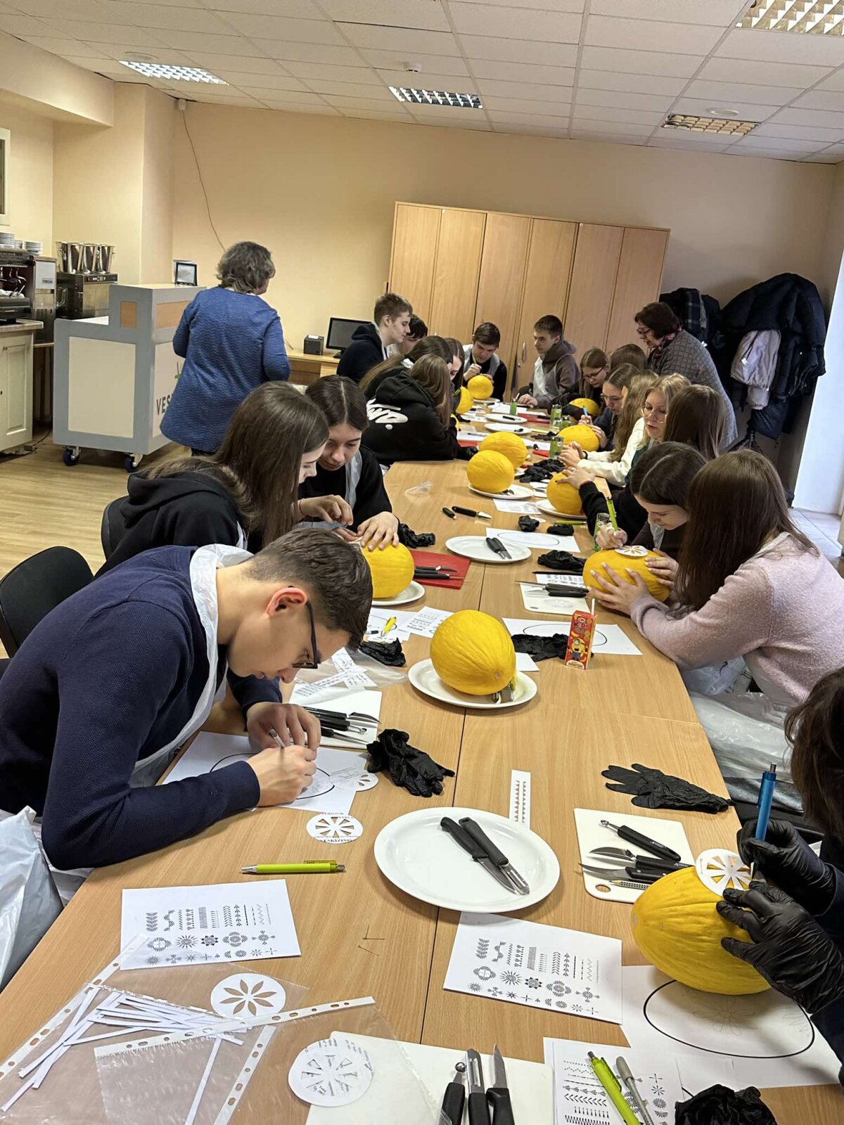 Vizito metu mokiniai susipažino su VESK siūlomomis mokymo programomis, mokymo erdvėmis bei profesinio mokymo galimybėmis. Taip pat dalyvavo karvingo edukacijoje, kurios metu mokėsi pjaustyti melionus ir kurti iš jų meno kūrinius.
