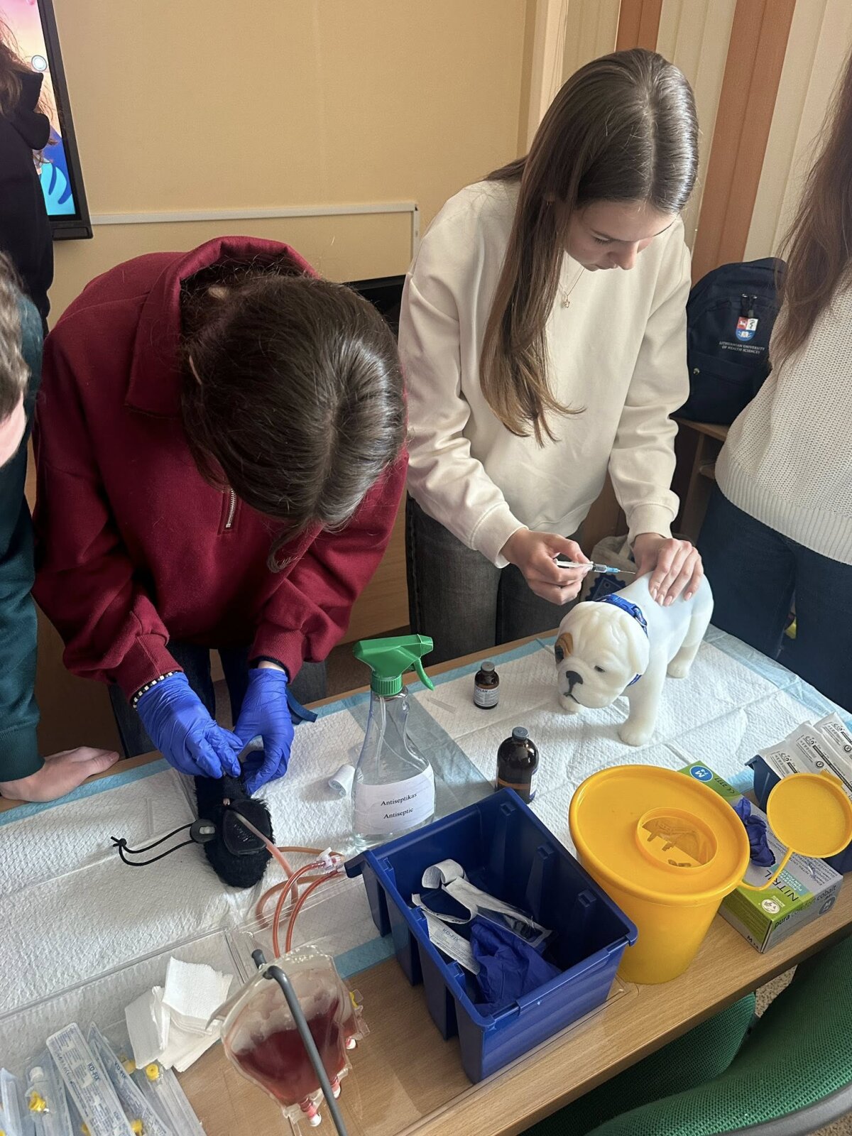 Ypatingas dėmesys buvo skirtas praktinei veiklai: mokiniai turėjo galimybę, padedant esamiems studentams, išbandyti vaistų leidimą bei kraujo ėmimą iš venos naudojant gyvūnų muliažus.