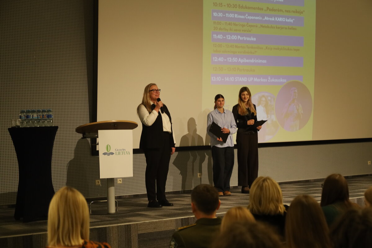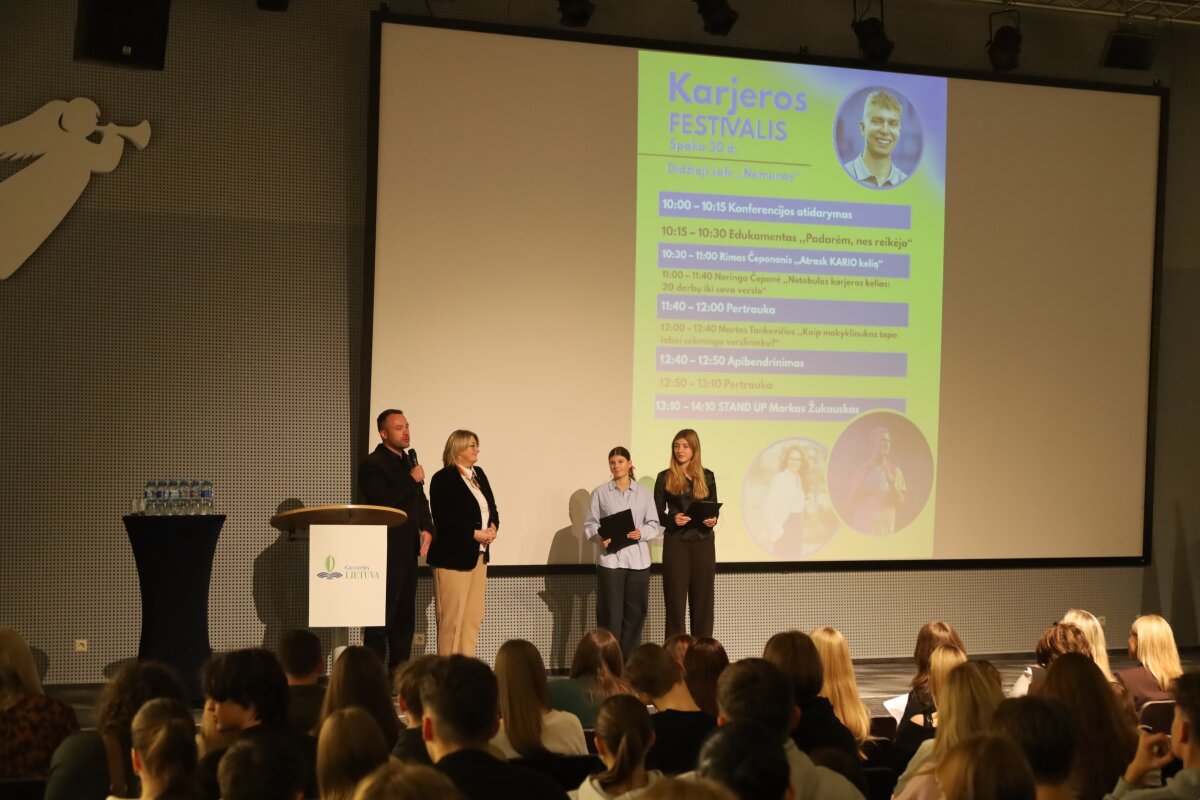 Didelis AČIŪ pagrindinėms renginio organizatorėms, karjeros specialistei Karolinai Juoskaitei-Vitkauskei ir Simonai Uscilaitei-Jančiulienei, ir net 20 savanorių gimnazistų komandai – už įdėtą darbą, kūrybiškumą ir energiją kuriant šią įsimintiną savaitę!