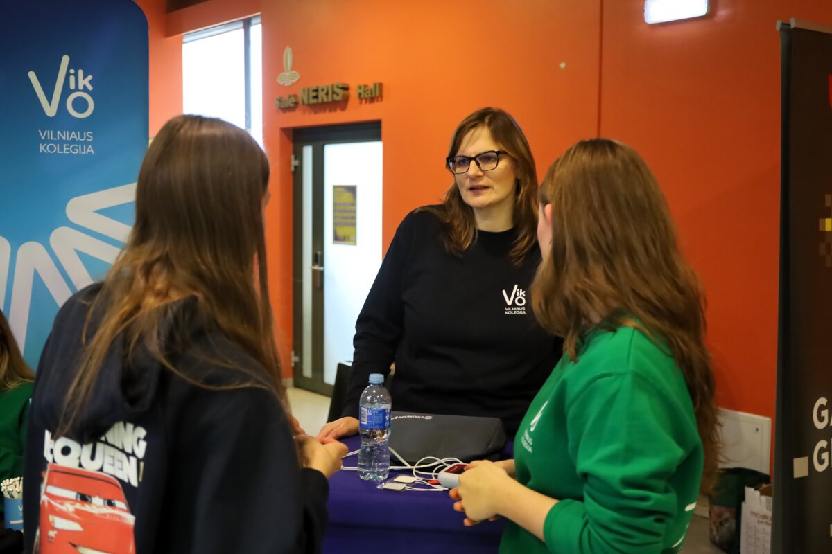 Konferencijų salėje „Neris“ – aukštųjų mokyklų pristatymai, diskusijos apie savęs pažinimą, profesinį pasirinkimą ir studijų kryptis.
