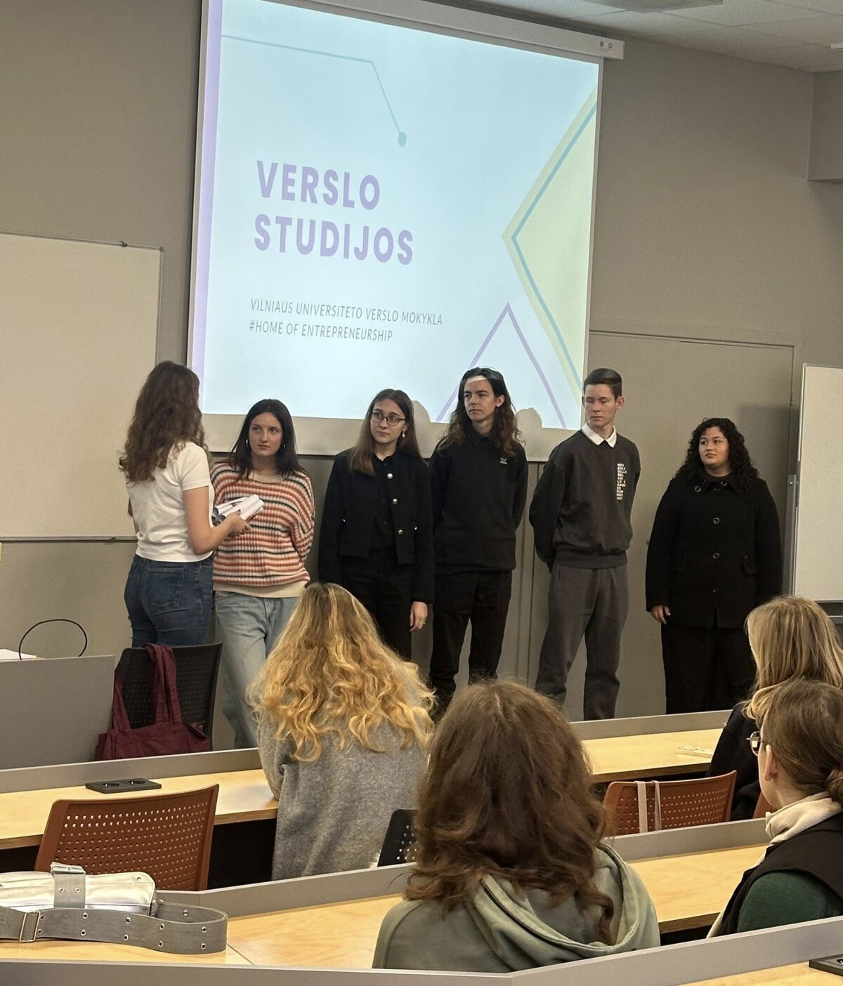 Mokiniai dalyvavo Verslo mokykloje vykusioje paskaitoje „Kaip pasirinkti profesiją teisingai?“, kurią vedė Akvilė Alauskaitė, bei kūrybinėse dirbtuvėse „Verslo kūrimo ABC“, kuriose praktiškai išbandė idėjų kūrimo procesą.